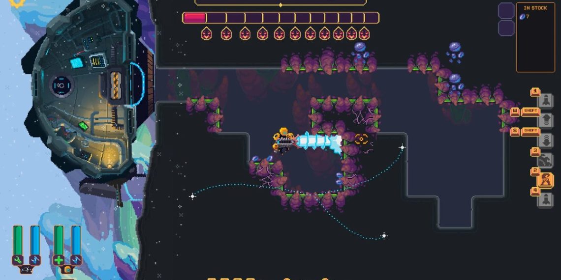 探索与采集是游戏的基础。玩家操纵机械蜘蛛在随机生成的矿井中穿梭,每个矿洞都有独特的布局和资源分布。墙壁中不仅蕴藏着化石资源和技术,还有各种可能帮助或阻碍探索的异常现象。玩家需要探索多个令人惊叹的生物群落,克服重重障碍,在挖掘过程中发现新的奇观。