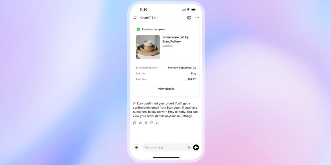 OpenAI 今日为 ChatGPT 宣布了一项新的即时结账功能,该功能旨在允许 ChatGPT 用户在不离开应用或 ChatGPT 网站的情况下,从 Etsy 和 Shopify 商家处购买商品。