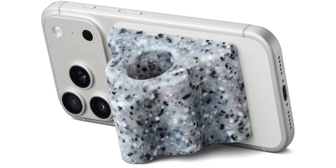 这款支架由洛杉矶设计师Bailey Hikawa设计,旨在庆祝苹果无障碍功能推出40周年。它通过磁力可牢固地吸附在任何支持MagSafe的iPhone上。