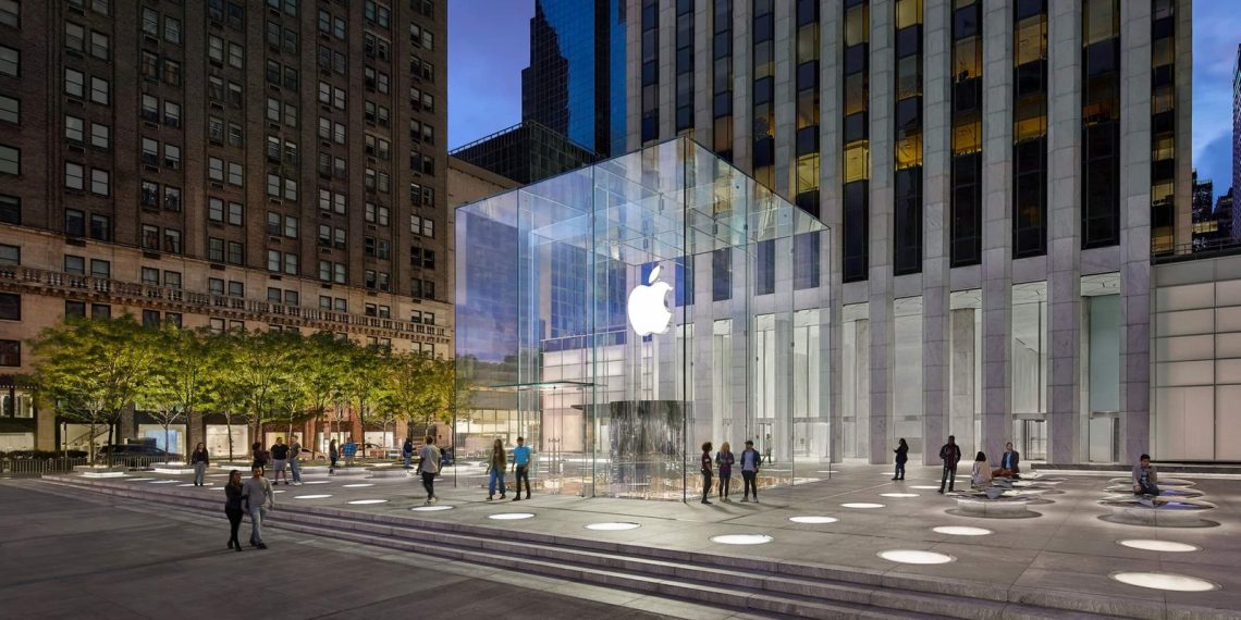 苹果第五大道店于2006年开业,以街面标志性的透明玻璃立方体入口为特色,店面主体位于地下。苹果CEO蒂姆·库克以及众多高管经常在此出席重大新品首发活动。