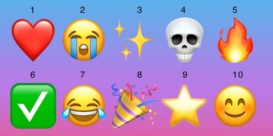 红色爱心是全球通用的榜首表情,其后依次是对勾标记、火焰、闪烁、大哭表情和骷髅头。