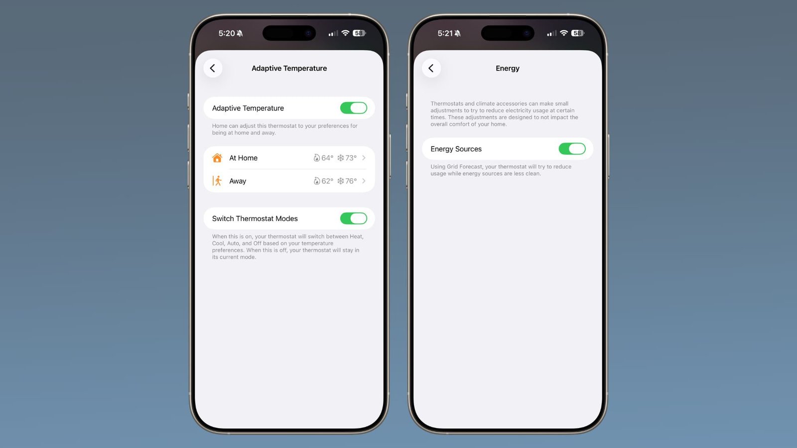 除了这些,它还支持Adaptive Temperature(自适应温度)和Clean Energy Guidance(清洁能源引导)这两项苹果在iOS 26中新增的HomeKit功能。自适应温度能在你出门、回家或睡觉时智能调整温控设置,从而节省能源。清洁能源引导则会在能源不够清洁的时候调整用电,把制热或制冷的时间安排在清洁能源充足的时候。