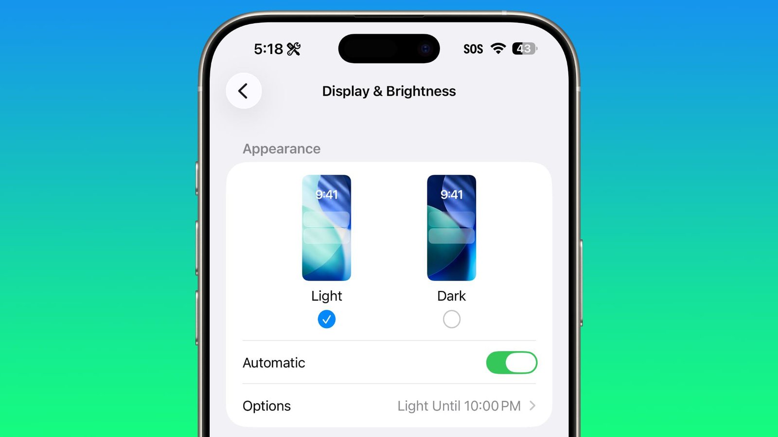 设置应用的“显示”部分现在使用了 iOS 26 主题的墙纸,而非 iOS 18 墙纸。
