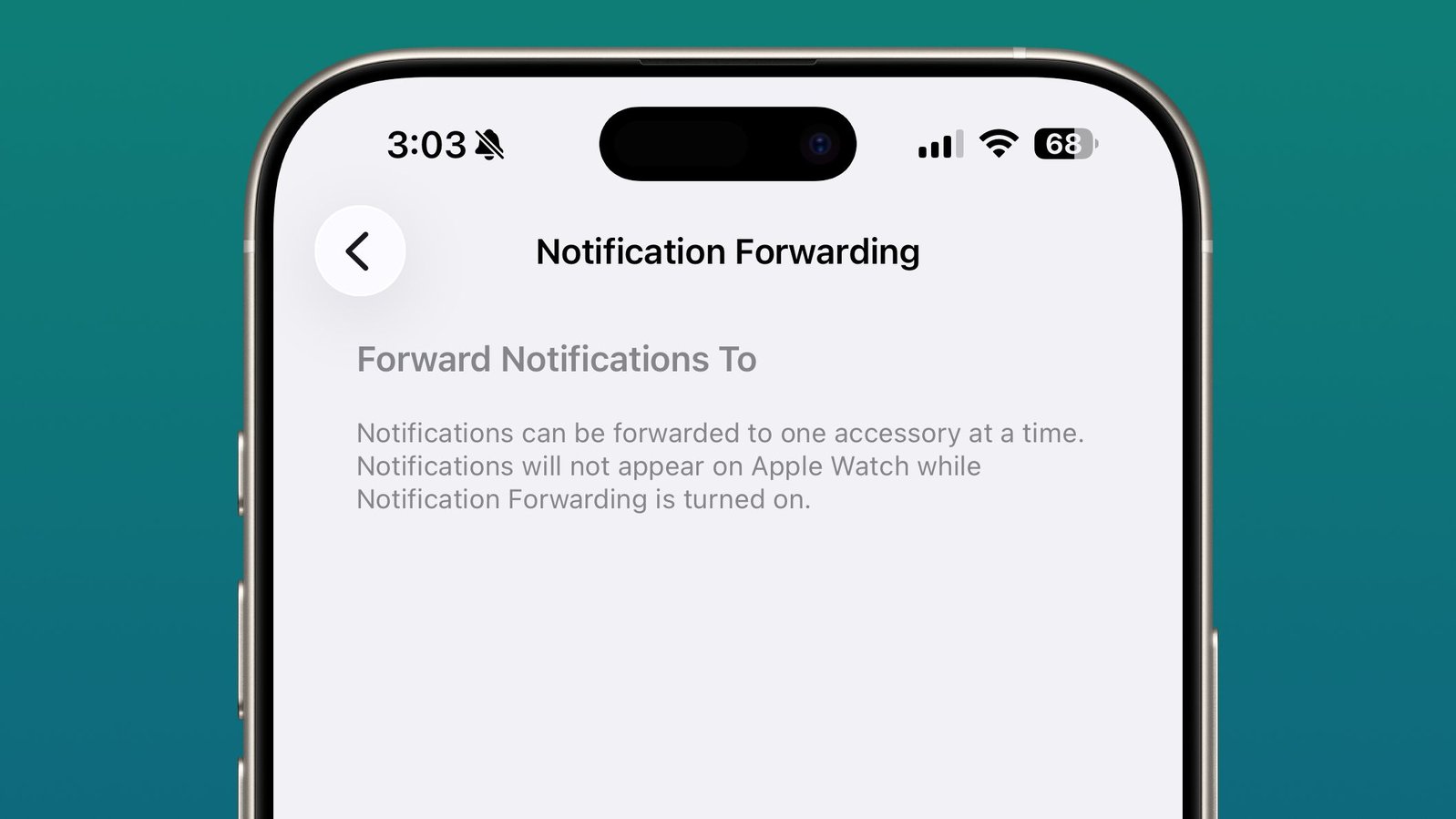 该设置位于“设置”应用的“通知”部分,是一个新的“通知转发”选项。苹果表示,通知一次只能转发到一个设备。因此,如果为第三方可穿戴设备启用了通知转发,Apple Watch 将无法接收和显示通知。
