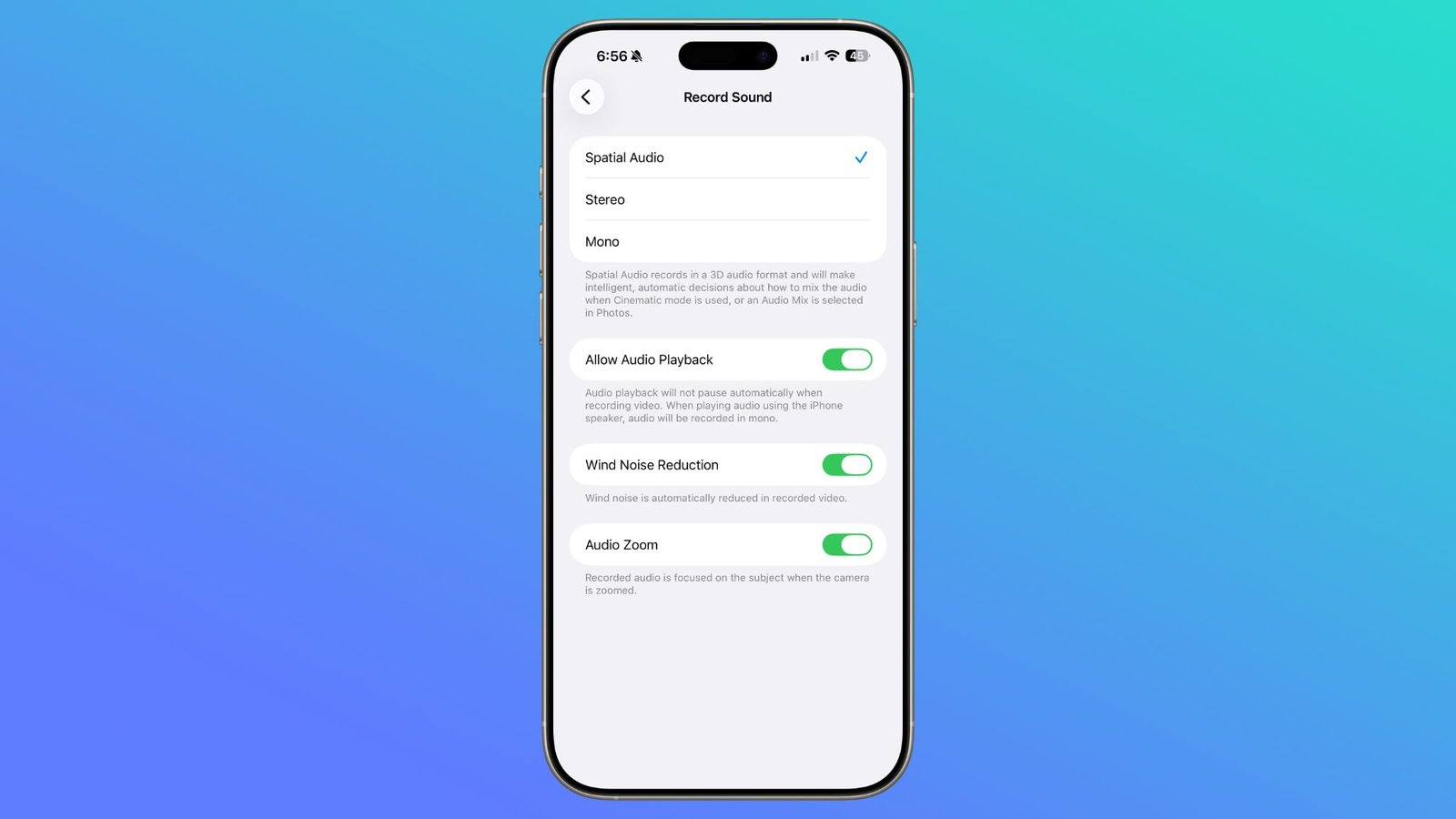 在相机 App 的设置中,新增了「音频变焦」选项。该功能可在录制视频时,当镜头变焦后自动让收音聚焦于拍摄主体。你可根据喜好自由开关此功能。