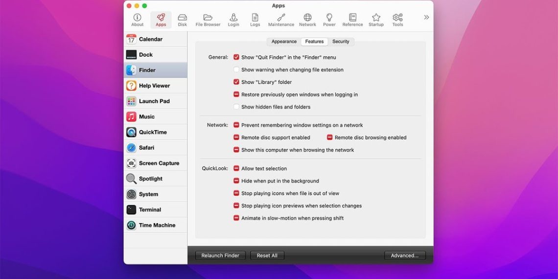 MacPilot集成了多种系统维护工具,能够运行维护脚本如cron、重建启动服务、更新预先绑定、强制清空垃圾箱、旋转系统日志以及回收不活动的系统内存。这些功能有助于保持系统的最佳运行状态,清理垃圾文件并提升整体性能。