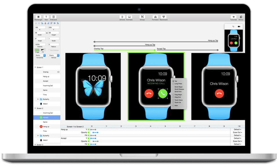 新版的时间轴功能得到了显著增强,使设计师能够更精确地控制动画的弹跳、缓动和节奏。时间轴支持关键帧调整,放大功能让关键帧放置更加精准,这对于微调复杂动画序列特别有用。Principle 6.39还引入了更丰富的缓动曲线选项,允许设计师在不离开软件的情况下实现专业级的动画效果。动画创建过程采用”自动补间”技术,设计师只需定义起始和结束状态,软件会自动生成中间过渡帧,大幅提升工作效率。