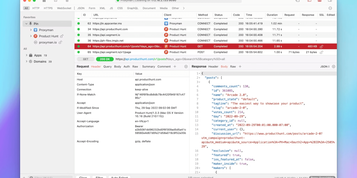 Proxyman的基础功能围绕HTTP/HTTPS流量的捕获、查看和分析展开。一旦证书配置完成并启用代理,所有经过代理的网络流量将立即显示在Proxyman的主界面中。界面默认分为三个主要区域:左侧面板显示流量来源(如应用程序或域名),中间面板列出所有请求流,右侧面板则详细展示所选请求的内容。这种三栏式布局既清晰又高效,大大提升了网络调试的工作效率。