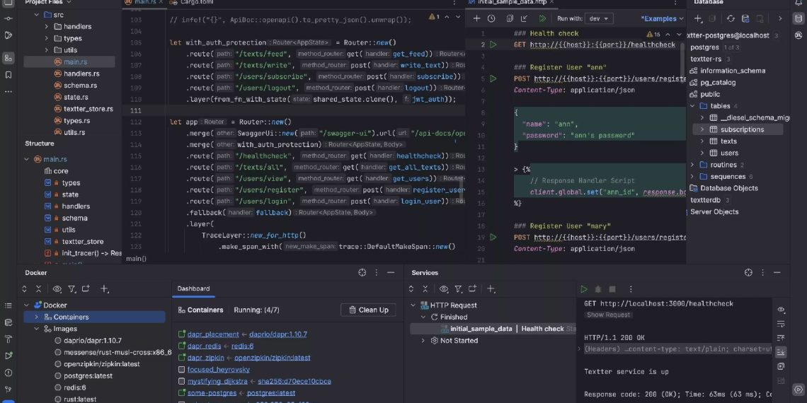 浮动弹出菜单的设计进一步提升了用户交互,选中代码后即可访问上下文动作,包括 AI 功能,这让操作更专注高效。 AI 聊天中引入的多代理体验,支持 Junie 和 Claude 代理无缝切换,保持项目上下文。 配额追踪器则让订阅用户清晰看到剩余 AI 信用和续订日期,避免意外中断。 终端补全和数据库体验的优化,也让 RustRover 在 Mac 上成为一站式开发平台。